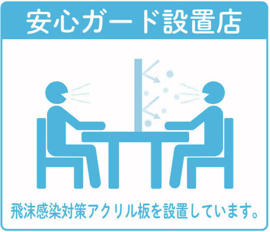 ・テーブルにアクリルパーテーションを設置して対応させていただいております。
